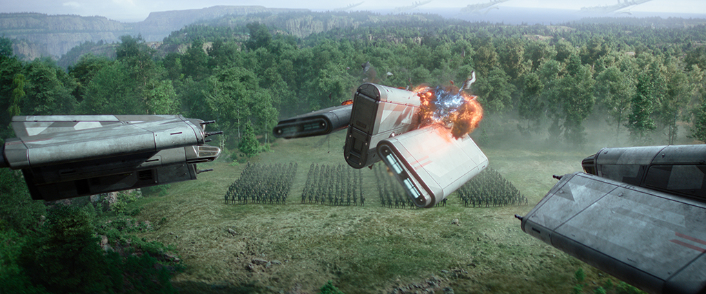 Serving as the main antagonist is the Mule, who throws the entire galaxy into chaos by having the power to mentally control people to the point where they will kill each other, as demonstrated by the Kalgan armada firing upon itself. “We started with detailed previs before we shot, but creative license was taken, so the footage led us to take a different path,” MacLean explains. “Once the editors got their hands on the sequence, it became more chaotic and visceral. We gave the sequence to Rodeo FX to animate the ships and add the complex effects simulations. After the first couple of rounds of iterations, we realized we needed more shots to fill out the story because of how chaotic everything was during the shoot.” Ten spaceships had to be fitted into the frame. “Putting it on a 24mm lens helped. However, the wider we went, the more environment had to be added back in.” The telepathic effect was treated differently in Season 3. “We had an objective view, which was a camera effect, and established that with the Mentalics in Season 2. Whenever Tellem Bond was around or affecting people, we put on detuned lenses, and the elements in the lens were skewed so it made this blurry effect at the edges. We established the rules, but the directors often took creative license and weren’t using them quite the way we had established, so we decided to control the effect in post for Season 3,” MacLean states.