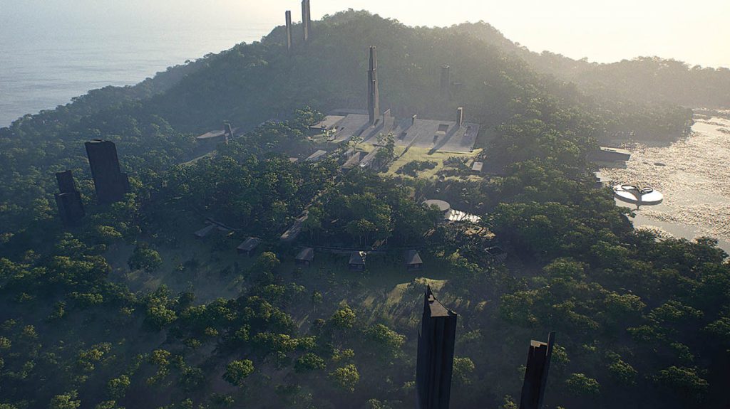 “The creatures were well in advance in terms of what they looked like before we designed and built sets,” Nicholson remarks. “Some of the spaces they appeared in had to be augmented to work with them, but that was more to do with the container vessels. The Xenomorph eggs that get carried into the ship were so big that they dictated the size of a couple of the doors on the sets.” The art department concepted Prodigy “Neverland” Research Island, which is located in New Siam. “We did a two-kilometer by two-kilometer section of Prodigy City in Unreal Engine based around the location we were shooting the crash site. We handed over to visual effects a many-gigabyte package of the city with a kit bash of parts so that you could expand that building type out as far as possible from wherever we needed to.” Elevating the fear factor in the sci-fi franchise is a particular architectural design element. “They’re in this ship with vents everywhere, and who knows how big this alien is? Where’s it going? It doesn’t feel like you shut the door and can be safe. It’s not even safe when Ripley gets into the shuttle at the end of Alien. We wanted to keep that fear going through this, and that’s the reason why there are vents in all the rooms in Neverland, even in the operating theatre.”