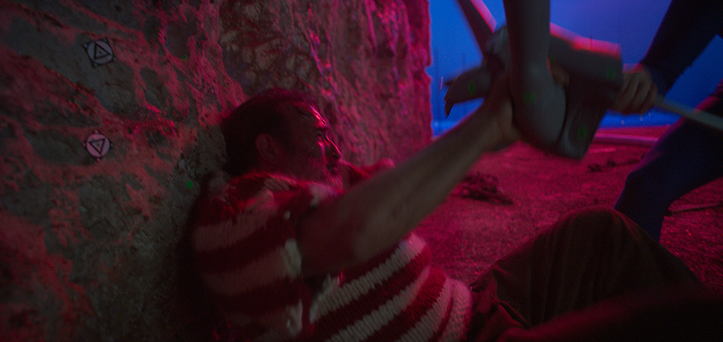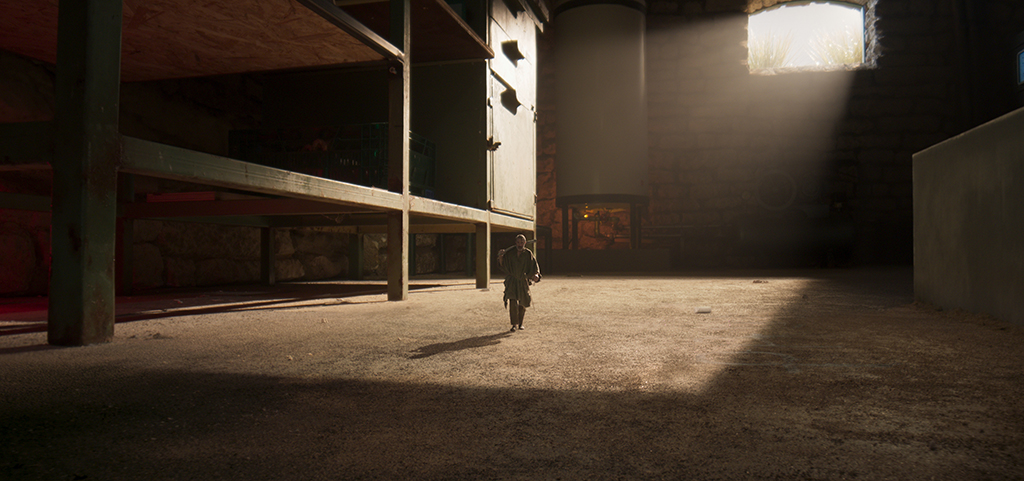 Setting up the motion control camera took a lot of time. “We basically have eight to nine pieces of wall that we can remove as well as seven pieces of the roof, depending on the motion that we need to do with the arm of the motion control camera,” De Longlée states. “If we shoot one shot at a time, we need to move the arm every time. We shot with the actor for a couple of weeks and ended up with 50 different shots with a different angle, and packaged all of the shots using the same angle of camera together. When we put the arm in the right place, we know that we can shoot different shots from different sequences using that same position in that same setup. Then we move the set, remove some wall, move the arm, remove some of roof, and shoot in the other angle using a different lighting setup. This allowed us to be more efficient.” Various constraints exist when shooting an actor. “You want to keep focus on emotion and the action, whatever is the camera angle. We let the director shoot as he wanted, and then group the shot by angle and by position of arm. We did a different schedule for the second team.”