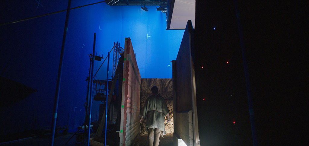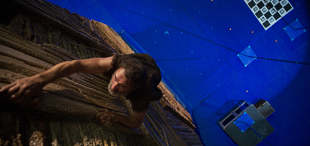 Motion capture helped with the animation of the digital double, which tended to appear in wide shots. “We went into the studio with the actor, and I had list of shots, sequences and actions,” De Longlée remarks. “I asked him, ‘Can you play when you’re eating or climbing in that sequence?’ We recorded the motion, which was then applied to his digital double, and put it in the shot.” Every shot had its own complications. “The Steadicam operator has the feeling that he can move wherever he wants because the studio is huge and empty,” Longlée notes. “But I know that in a couple of days, I will have a huge arm that is really heavy, which is going to move in the basement set, do almost a 360 and is going to collide with almost everything in the set. I need to make sure that when we shoot with the Steadicam, I can control in real-time the motion that the arm is going to make to ensure that the camera is not colliding with anything. It was almost like a stop-motion animation movie where you play with a puppet, shoot a frame, move the puppet and shoot another frame.”