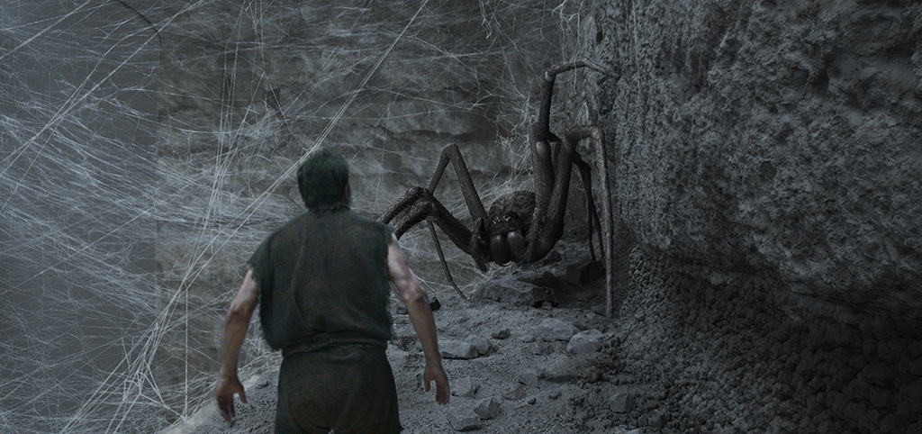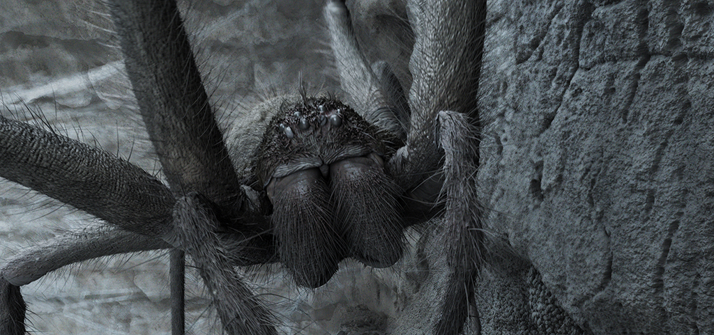 Causing havoc is a predatory CG spider, which was designed before principal photography commenced.