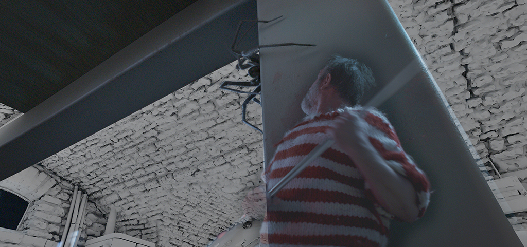 Downsizing presents some seriously big problems, especially when a shipbuilder suddenly finds himself less than a centimeter tall and having to deal with a predatory spider roaming his basement. The French adaptation of The Incredible Shrinking Man was directed by Jan Kounen and stars Jean Dujardin in the title role. As much as there was a desire to shoot practical effects, digitally tricky was unavoidable, so Paris-based Mac Guff’s four decades worth of experience was sought out with a team led by Benoit De Longlée responsible for 360 visual effects shots, 200 motion-controlled shots, CG creatures, a massive water droplet, and taking a 1.8 meters-tall Jean Dujardin and making him less than a centimeter in height. Mac Guff did not work alone as Les Androids Associés looked after previsualisation, Armada took care of set photogrammetry, and Spline was responsible for the motion control camera. “This project was one of the most challenging at Mac Guff last year because we had to shrink a tall man,” states Charles Seignolle, Head of Production at Mac Guff. “The idea was not to go full CG, like in a Marvel movie when Ant Man is shrinking. The director wanted to have oversized sets, but even those that were not oversized had to feel real. The technique used for that was motion control.”