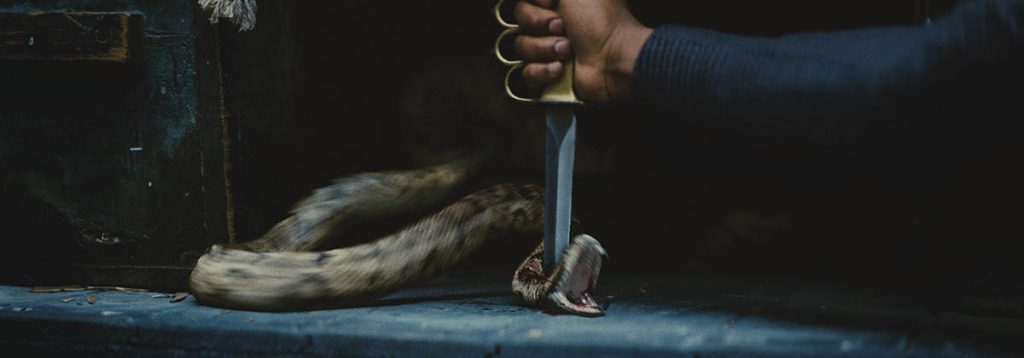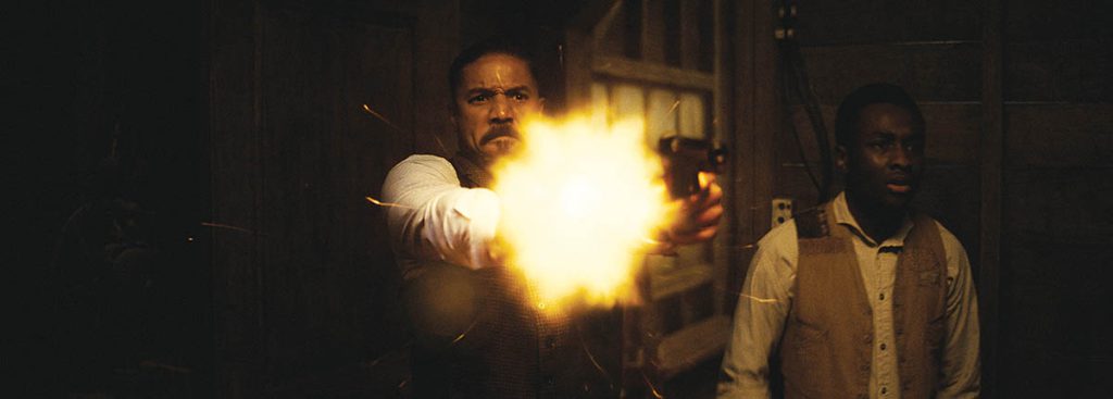 Captured for real was the car shootout at the end. “We took the same car from Bonnie and Clyde: Dead and Alive [2013], which had 118 squibs, and used that for R&D to figure out what the bullet holes would look like and to rehearse the camera moves,” remarks Special Effects Coordinator Donnie Dean. “We did 10% of the bullet hits to start getting the camera moves down and gradually ramped up until we had over 80 squibs on the car going through it on each side. You had it so that the squibs move around the car with the camera because the camera can’t see the entrance and exit [of the bullet hits] at the same time; therefore, you had to space them out but not make it look weird.” Fire has a prominent presence. Dean remarks, “We now have access to materials that are more fire resistant than you might have had 10 or 15 years ago. You see the barn door go up in the movie, and we could build that in a way where you can burn it and turn it off and it’s not marred. When you see the ceiling burn away, that’s a different story. That took three months to figure out. We tried different materials because there is a certain amount of time [30 to 45 seconds] you have for that roof to burn away. The fire tornado [caused by the death of Remmick] was practical, and that also took us three months. It was a combination of a mechanical situation with propane adaptors. There were fireballs spinning around that create the swirl and a big metal turbine in the middle of it all. We fed that with big vacuums used for [cleaning] parking lots. We plumbed that in to push the air into the big turbine and then plumbed it with massive inlets of propane. If you shove enough propane in there it will still burn. We went through a $1,000 worth of propane for one shot. The fire tornado went 60 feet high and touched the ceiling of the studio!”