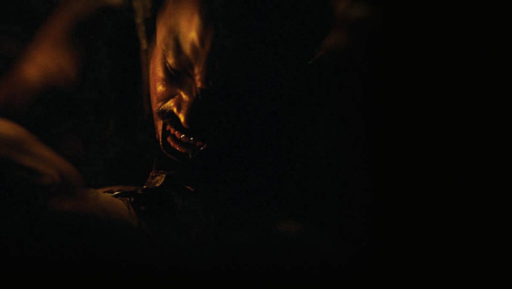 Unlike the traditional two little holes in the neck, Coogler wanted the vampire bites to be massive wounds. “I started studying dog and shark bites to see how the flesh moves and what the bleeding looks like,” remarks Special Effects Makeup Designer Mike Fontaine, who also had to show the adverse effect that sunlight has on the skin of vampires. “When Remmick initially shows up, his body is covered with burns, which were not meant to appear fantastical. I found these amazing photos on medical websites of second and third-degree burns and came to the conclusion that nothing was going to look as real as them. We printed those photos on temporary tattoo paper, stuck them to the body and peeled them off.” There was a specific visual aesthetic for the vampire eyes. “Ryan referenced this effect called tapetum lucidum, which is the reflective quality that you’ll see in the eyes of nocturnal animals. I reached out to this amazing contact lens artist named Cristina Patterson and discovered she had been secretly developing a contact lens that does this effect. These practical contact lenses were able to not just have a paint design but to reflect light in the actor’s eyes.” There were situations where the contact lenses could not be used because of cost, logistical or safety reasons. Fontaine reveals, “This is where the visual effects team came in. They were able to scan and photograph the contact lenses to replicate them digitally. The end result is practical and visual effects working together.”