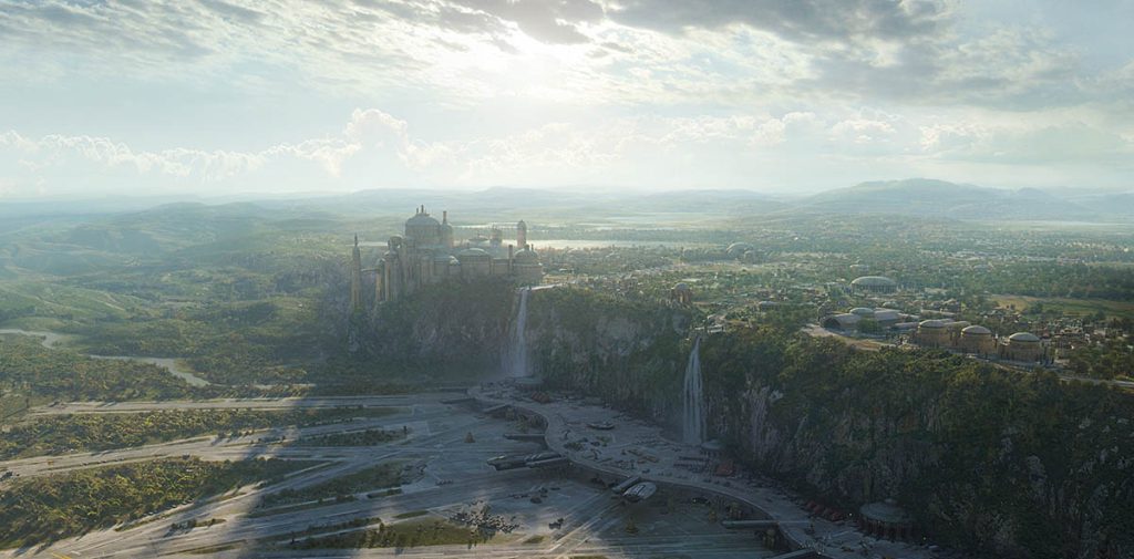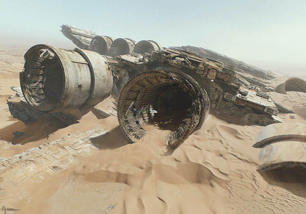 Like many in the field, Mueller began with a foundation in traditional art. “That path eventually led me to the world of visual effects, which had long fascinated me, especially the groundbreaking work of the artists and technicians behind George Lucas’s original Star Wars films. My first film credit as a matte painter came on the Mark Wahlberg football movie Invincible, where I worked at Matte World Digital alongside the Academy Award-winning visual effects supervisor and author of The Invisible Art, Craig Barron, VES, and senior art director Chris Evans.” Currently, being part of ILM provides Mueller with “the opportunity to work on a wide variety of high-quality projects in the visual effects industry. One of the highlights of my career was working on my first Star Wars film, The Force Awakens, where I helped bring J.J. Abrams’ unique vision of the Star Wars Universe to life. Collaborating closely with VFX Art Director Yanick Dusseault, we created distant worlds across the galaxy, from the desert planet Jakku to Starkiller Base – an icy world transformed into a super weapon by the First Order.” Time pressure, especially in high-end film and VFX, can be intense for matte painters. “You might have only a day – or even just an hour – to deliver a polished final product. Clients and directors may request changes that require significant rework,” Mueller says. “Matte paintings need to hold up at 4K resolution and sometimes even as high as 32K. Working non-destructively and saving incrementally is essential.”