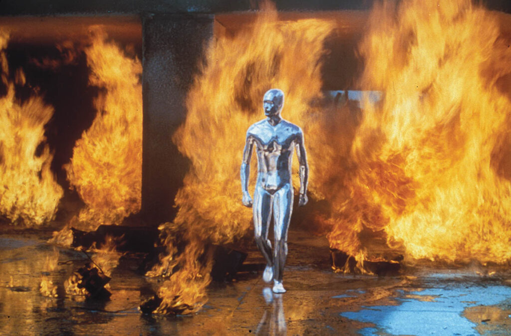 Technically, the T-1000 in Terminator 2: Judgment Day wasn’t metal but a poly alloy, which meant that it didn’t have to match any particular metal or chrome. (Image courtesy of Industrial Light & Magic)