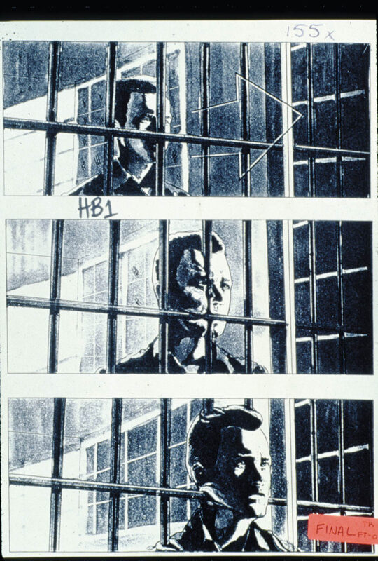 Detailed storyboards illustrating the T-100 going through the prison bars in Terminator 2. (Image courtesy of Industrial Light & Magic)