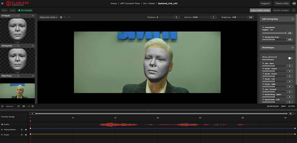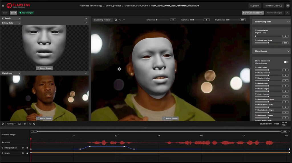Flawless specializes in syncing the facial mannerisms with dialogue. “Flawless is creating tools for filmmakers that allow for the re-articulation of the mouth,” states Eric Wilson, Senior Director of VFX and Image Pipeline at Flawless. “We don’t have anything to do with the audio itself, but we do take in new audio, whether that has been re-recorded by the actor or recorded by a different actor speaking in a different language; we can apply that to the mouth movement so it’s correct for that particular line. What we’re trying to do is to stay as true to the actor’s original performance. You temper your cadence so that it matches what has already been said and try to find words that fit within the same period of time. What happens is you’ll put emphasis on words, and when people talk, their eyebrows go up and down, cheeks move and the head bobs, and often those are directly tied to the language that they’re speaking. Suppose you have a different language, like French, where the word order suddenly changes, and you have an actor emphasizing a particular word that now falls in a different place in the sentence. In that case, you have a mismatch in performance dynamics. We’re looking at that and asking, ‘How can we keep our new version true to those acting moments?’” To accomplish that, there is some digital augmentation in the area of the mouth. Wilson says, “Our software works by first putting 3D geometry onto the face that gets perfectly tracked, matched and fitted to the face, including the beard. Then we have lip animation that happens. It gets driven by the audio. A big part of our technology that is different from is that you can go in and refine the animation of the lips. We can train on as little as one shot, so you can make each shot look exactly correct without having to feed it a ton of other training data. As long as you can see the inside of the mouth, you’re good to go.”