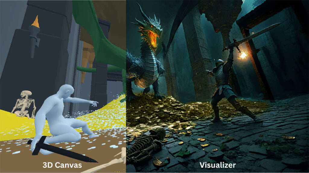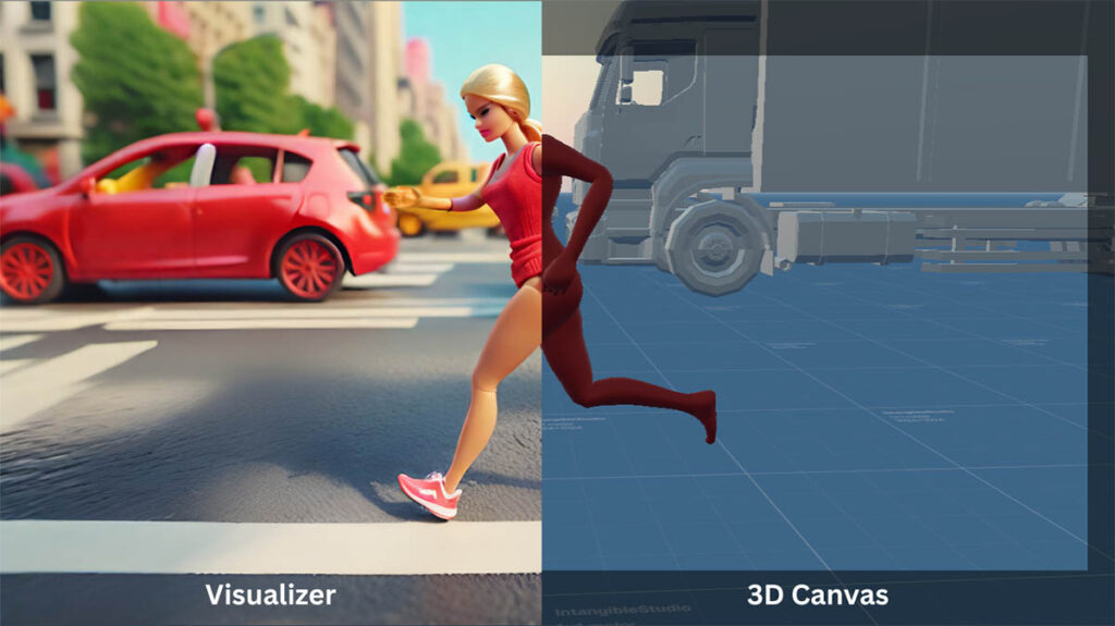 Generative AI is at its best when enabling, rather than taking away from, creative minds with a lifetime of expertise. “I put together a theory of how you could apply generative AI and package it in a simple and fast tool to author and interact in 3D,” explains Charles Migos, Co-Founder & Chief Product Officer at Intangible.ai. “I used that as the basis of creative communication, most notably during the pre-production phases where it matters, because what you decide there affects 100% of what will happen in production and post-production.” Developing an effective and efficient UI is not hard. Migos explains, “If you pay careful attention to how creatives operate and look at the process around dailies and how they discuss the creative work at hand, it becomes easy to theorize about how you would create a workflow that will suit the creative discourse itself; while not trying to be Maya where everything is there because you don’t know what is going to be the next needed thing in the system, even though most users only use 30% of the system capabilities of a tool of that caliber. The rest is net waste utility. We’ve come from a viewpoint that you don’t need to learn how to model, texture, rig, animate, light, or do all the things that are required when using traditional pipeline tools today. Let’s make it one that allows you to keep a high level of representation of the narrative but gives exacting control on how you break that narrative down over time into scenes, shot composition and sequences of shots that are meant to tell the story.”