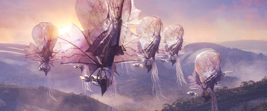 Avatar: Fire and Ash earned seven awards, including: Outstanding Visual Effects in a Photoreal Feature; Outstanding Character in a Photoreal Feature (Varang, played by Oona Chaplin); Outstanding Environment in a Photoreal Feature (Bridgehead Industrial City); Outstanding CG Cinematography; Outstanding Model in a Photoreal or Animated Project (The Windtraders’ Gondola); Outstanding Effects Simulations in a Photoreal Feature (Simulating Pandora); and the Emerging Technology Award (for the Kora Fire Toolset). (Photos courtesy of 20th Century Studios)