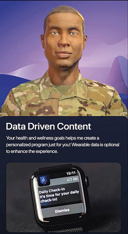 VFXV: On that note, your work with virtual humans and support for military veterans has converged with the creation of Battle Buddy, an AI-driven mobile health (mHealth) application tailored exclusively for veterans and developed in response to the U.S. Department of Veterans Affairs’ Mission Daybreak Challenge to end the epidemic of veteran suicide. Walk us through this program.