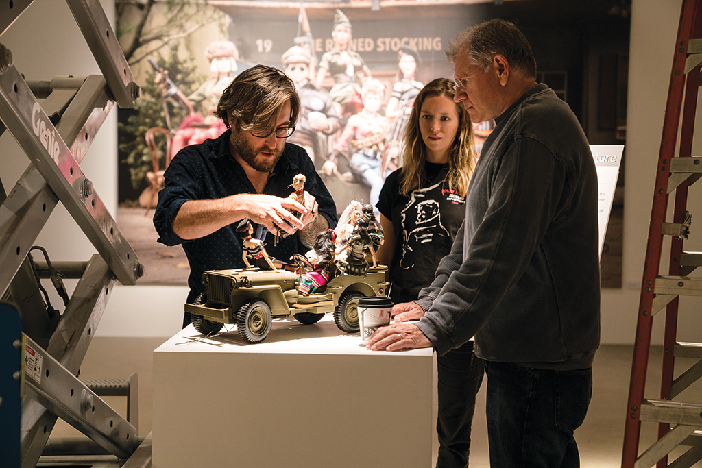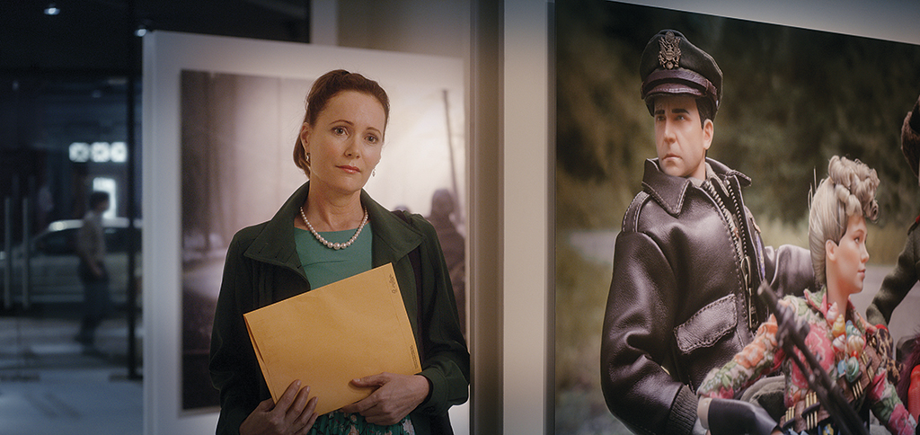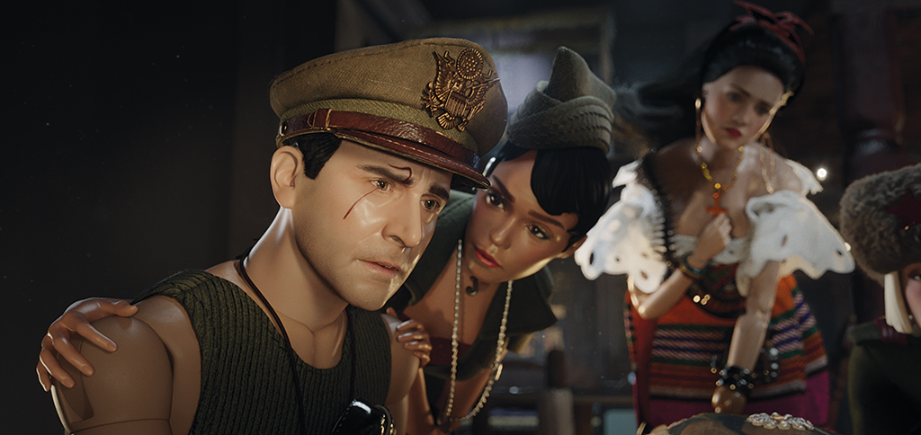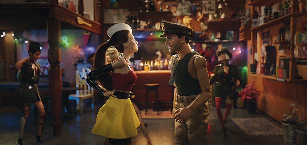 To properly convey scale in the Marwen mini-village, depth of field had to be reduced proportionally. “We’d have a compositor set the depth of field before feeding that data back into the 3D render,” states Baillie. “When the animator renders the image with first-pass lighting along with the focus adjustment, Bob’s eye would be led to the right place. To achieve a look that was authentic to Mark Hogancamp’s original photography, Atomic rendered all of their de-focus in physically-accurate 3D with Renderman. In reality, when an object is out of focus, you start seeing around behind it, but that’s not something possible when doing depth of field as a post-process in comp. Before rendering our de-focus in 3D, we had to devise workflows to ensure that rack focuses rendered properly, rather than iterating with expensive renders.”