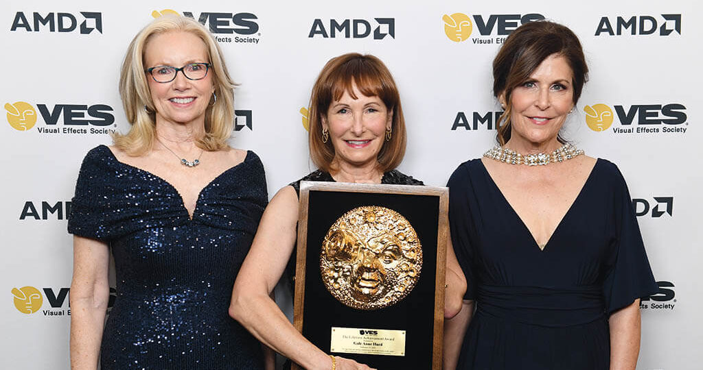 Academy Award-winning filmmaker James Cameron presented the VES Lifetime Achievement award to acclaimed writer-producer Gale Anne Hurd.
